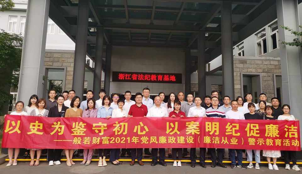 2021年(nián)是(shì)中國(guó)共産黨建黨100周年(nián),是(shì)十四五規劃的(de)開(kāi)局之年(nián),為(wèi)進一(yī)步加強公司黨風(f"ēng)廉政建設,強化(huà)黨員(yuán)幹部黨性、法紀及廉潔意識,築緊、築牢拒腐防變思想防線,2021年(nián)6月(yuè)30日(rì),浙江東(dōng)方第十七黨支部"(般若财富黨支部)組織公司黨員(yuán)、中高(gāo)層管理(lǐ)人(rén)員(yuán)及項目端業(yè₩)務骨幹赴浙江省法紀教育基地(dì)開(kāi)展黨風(fēng)廉政(廉潔從(cóng)業(yè))警示教育活動。